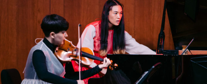 Sugar Vendil is a composer, pianist, choreographer, and interdisciplinary artist based in Lenapehoking, known as Brooklyn. She started her artistic life as a classical pianist, and after spending nearly a decade searching for her own voice, her practice evolved into performances that integrate sound, movement, and unconventional approaches to the piano. She writes and performs her own solo music for piano and electronics and has a keyboard/synth duo, Vanity Project, with composer Trevor Gureckis.