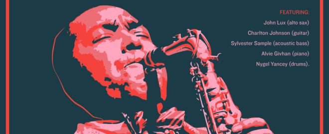 Jazz tribute to Charlie Parker featuring John Lux (alto sax), Charlton Johnson (guitar), Sylvester Sample (acoustic bass) , Alvie Givhan (piano), and Nygel Yancey (drums).